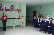 Заместитель директора по воспитательной работе Филиппова Ю.Н . сказала вступительные слова, затем, юнармейцы внесли флаги Российской Федерации и Республики Татарстан, учащиеся спели гимны. После чего директор школы поздравила всех с началом 2 четверти и пожелала успехов.