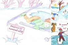 А учащиеся начальных классов нарисовали рисунки на конкурс "Буду бдительным на льду и на воде"