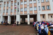 В 8:15 часов перед школой прошла торжественная линейка с поднятием флага Российской Федерации и флага Республики Татарстан.Право поднять государственные флаги доверили ученице 11а класса Палагиной Елизавете и ученику 6 б класса Потапову Тимофею.