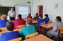 Мынов В.А. учитель ОБЖ ответственный за охрану труда в школе выступил перед техническим персоналом с целью профилактики несчастных случаев среди работников и по улучшению условий и охраны труда. -