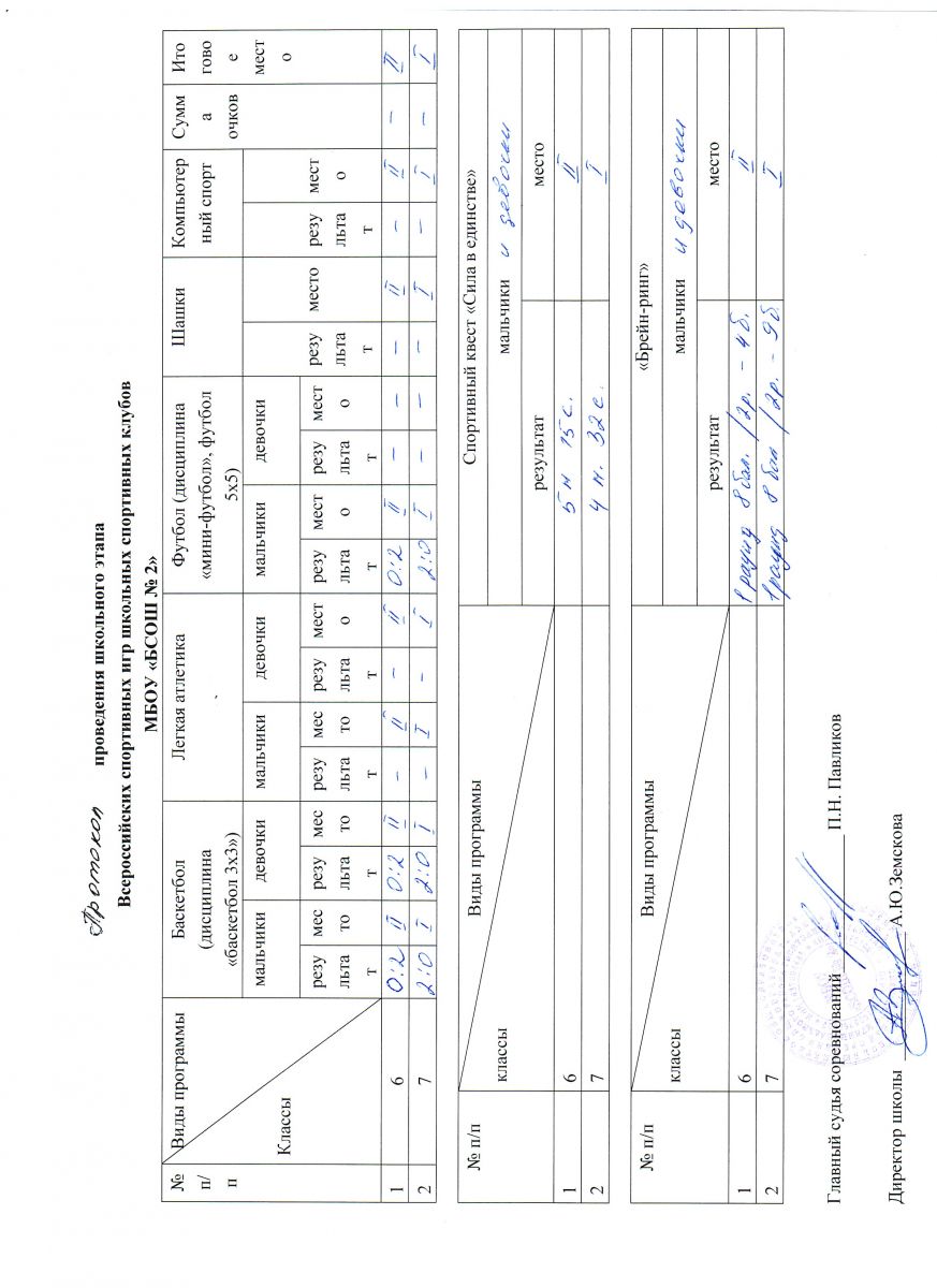 Итоговый протокол школьного этапа ШСК февраль 2026 год