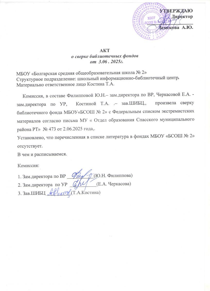 Акт о сверке библиотечных фондов от 9.11.2024г