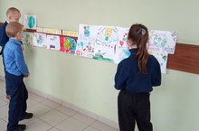 Ученики 1-2 классов приняли участие в конкурсе рисунков на тему:"На защите мира". Выставка лучших работ украшает коридор школы.