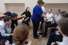 Сегодня, совместно с работниками социальной защиты, было подготовлено и проведено тренинговое занятие для воспитанников 9 класса, на котором дети закрепляли коммуникативные навыки подростков.Во время занятия был создан положительный эмоциональный фон в классе; по средствам психологических упражнений чувствовалось сплочение детей; преодоление коммуникативных барьеров; также некоторые упражнения способствовали развитию умения взаимодействовать с окружающими людьми.