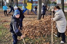 Воспитанники школы-интерната совместно с воспитателями производят уборку территории от листвы.