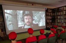 В рамках мероприятий, посвящённых 75-летию Победы, наш отряд юнармейцев посетил кинозал городской библиотеки, где после беседы для них состоялся просмотр фильма "Т-34" о подвиге советских танкистов во время Великой Отечественной войны.