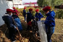 Сегодня, 23 сентября 2019 года, юнармейцы ГБООУ "Болгарская санаторная школа-интернат" помогли подшефному детскому саду "Солнышко" убрать территорию игровой площадки.