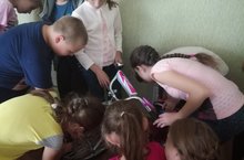 . Всё действие проходило на озере Мочилище. Ребята начальных классов приняли участие в спортивных эстафетах, в которых нужно было пробежать с мячом, со скакалкой.