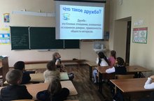 В 1 классе прошло занятие, направленное на сплочение коллектива, под названием "Дружба-чудесное слово".Целями классного часа стали: определение важности истинных друзей в жизни человека, ознакомление с правилами дружбы, воспитание уважения к окружающим.На занятии ребята обсуждали не только положительные, но и отрицательные качества людей, определяя из них те, которые присущи настоящим друзьям. Каждый попытался объяснить значения таких слов, как: искренний, доброжелательный, равнодушный и др. Так же ребята узнали несколько новых пословиц о дружбе, которые ранее не встречали. Пословицы были разобраны и объяснены.Мероприятие прошло успешно, дети получили новую информацию и настроились на то, что станут настоящими, искренними, отзывчивыми друзьями, готовыми помочь друг другу в трудную минуту. -