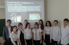 Воспитатели Журавлев С.В. и Палагина Т.А. познакомили воспитанников 8 класса с историей возникновения "коррупции" и методами борьбы с ней. Ребята сделали соответствщие выводы.
