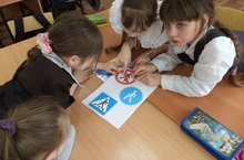 Для воспитания навыков выполнения основных правил поведения обучающихся на улице, дороге, с целью предупреждения детского дорожно-транспортного травматизма было проведено очередное занятие по ПДД. На занятии использовалась презентация, просматривали отрывок мультфильма «Ну погоди!». Работая в группах, дети раскрашивали светофор, играли в игры «Собери знак», «Веселые вопросы», «Это я, это я, это все мои друзья!»