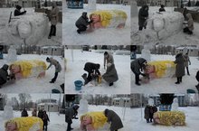 Педагогами санаторной школы-интернат Журавлевой В.Р., Брыкаловой Е.А.,Беляевой Е.Ю.,Маряниной О.А. для украшения и создания праздничного настроения на городской площади была вылеплена из снега символ-года-овечка, она получилась очень красочная и жизнерадостная.