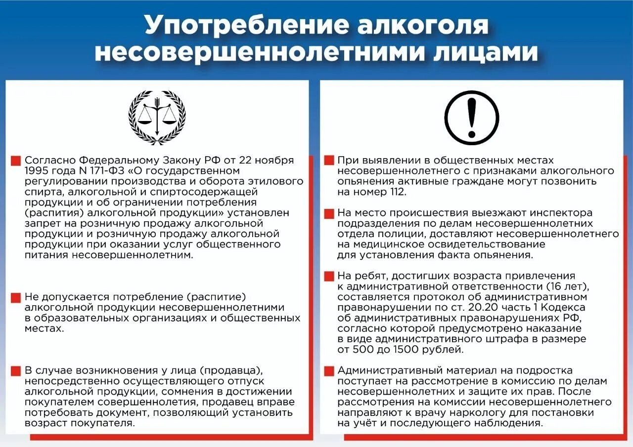 Ответственность за употребление алкогольной и спиртосодержащей продукции несовершеннолетними