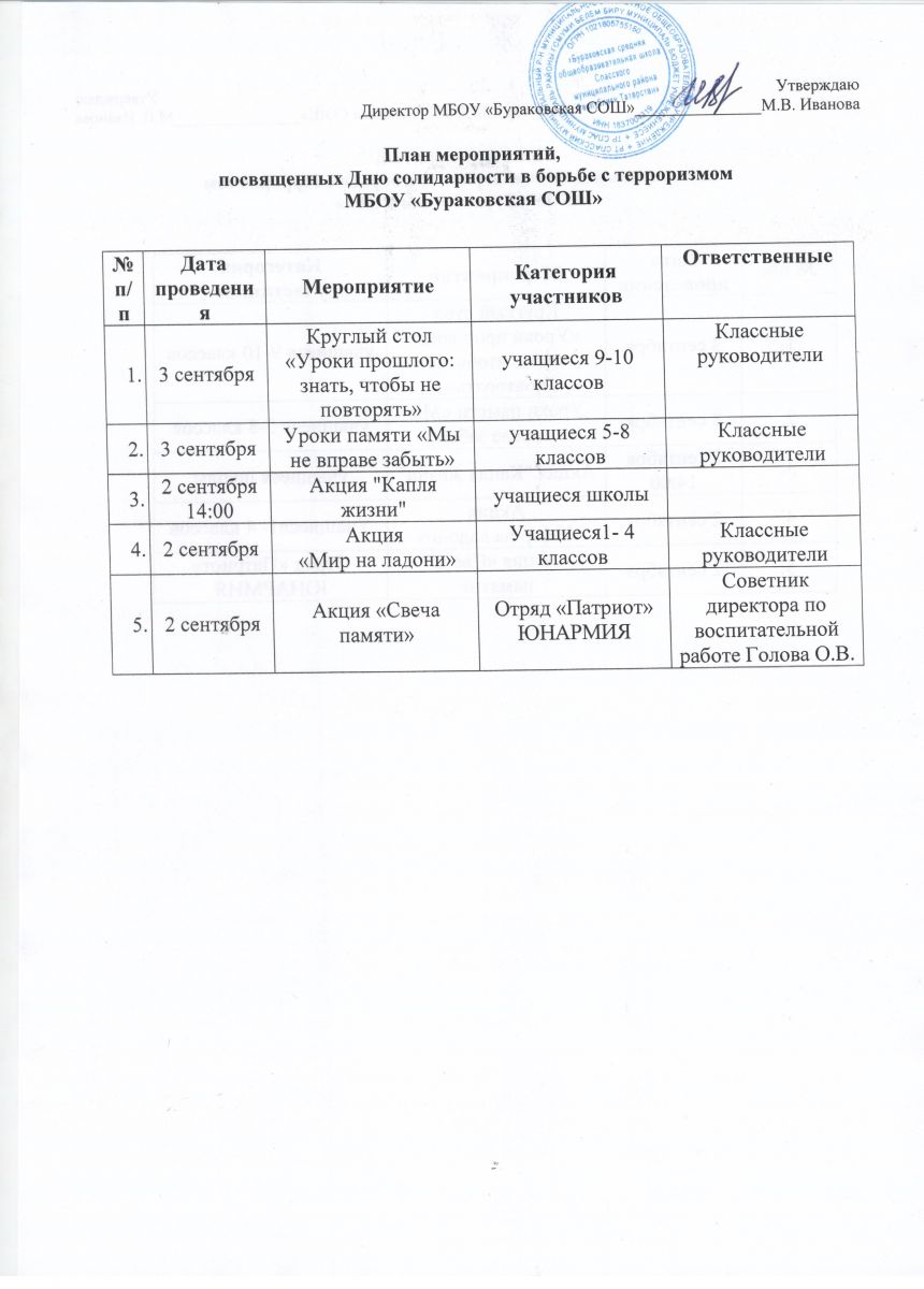 План мероприятий, посвященных Дню солидарности в борьбе с терроризмом 18.08.2025