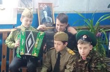 В рамках празднования Дня Победы в Великой Отечественной войне 1941-1945 годов было проведено театрализованное представление по поэме А.Т.Твардовского «Василий Теркин».Мальчики 5-8 кл инсценировали главу «Гармонь» .Роль Теркина сыграл ученик 5 ого класса Садрутдинов Айнур . Он сыграл на гармони известные военные песни , а его боевые друзья подпевали. Всем понравилась в их исполнении песня «Катюша».