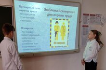 К мероприятию была подготовлена книжная выставка «Охрана труда – забота твоя», на которой были представлены основные и нормативные правовые акты по охране труда и плакаты по обеспечению техники безопасности при осуществлении работ. Также ребята посмотрели электронную презентацию о социальном, экономическом и правовом значении охраны труда, познакомились с историей возникновения Всемирного дня охраны труда, узнали, какие должны быть документы, как вести себя на рабочем месте в экстренных случаях, как проводится инструктаж, и как важно охранять труд. -