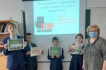 Пятиклассники познакомились с понятием «коррупция», выяснили причины ее возникновения, чем страшна коррупция, узнали какие меры принимаются правительством по борьбе с ней. Также высказали свое собственное мнение и позиции по отношению к этому вопросу.