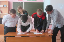 Сегодня наши учащиеся соревновались в своих знаниях по предмету "Обществознание"