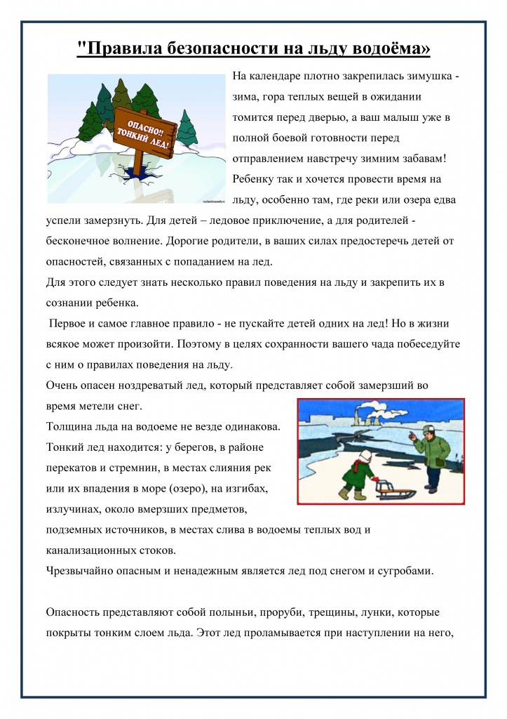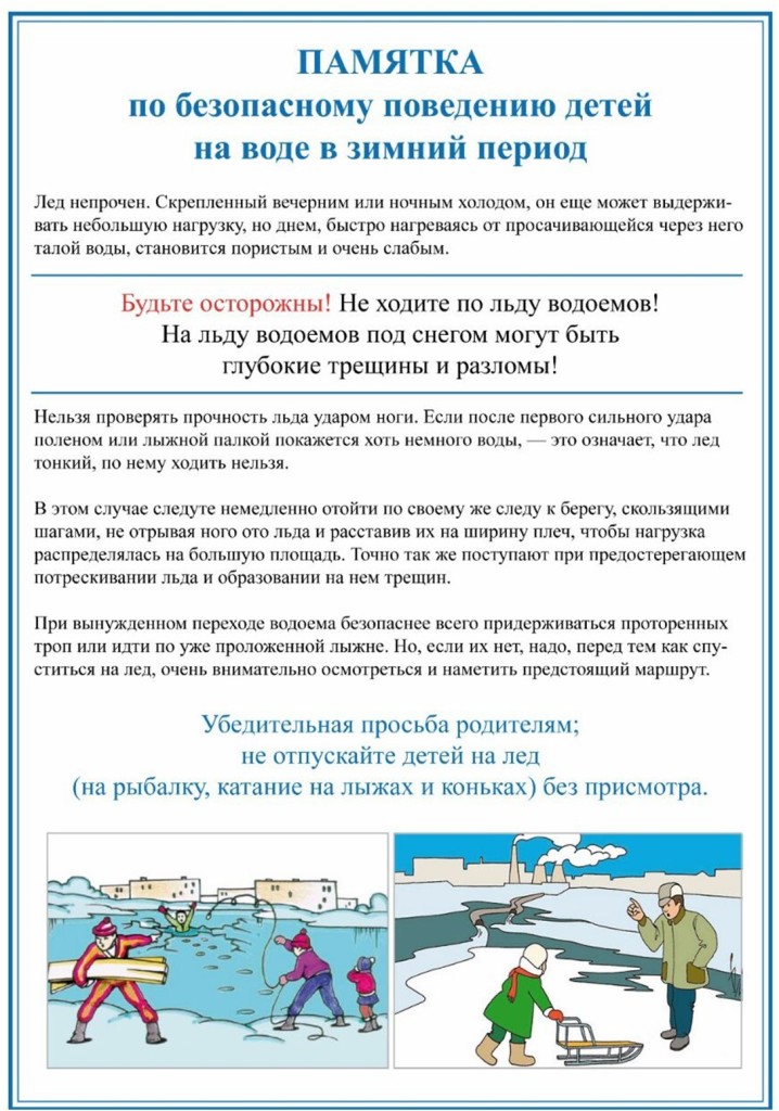 Памятка по безопасному поведению детей на воде в зимний период