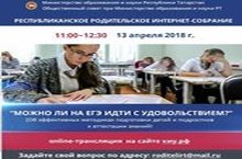 13 апреля с 11.00 до 12.30 на сайте киу.рф состоится очередное родительское Интернет-собрание по теме "Можно ли на ЕГЭ идти с удовольствием?".