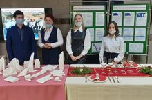 На выставке они представили вариант новогодней праздничной сервировки стола, провели мастер-класс по сворачиванию салфеток разными способами , показали презентацию достижений педагогов и студентов.