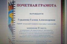 Гурьянова Галина, студентка Спасского техникума по специальности «Технология продукции общественного питания» награждена дипломом за 2 место в номинации «За практическую значимость» в конкурсе исследовательских работ.