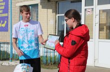 Волонтеры поздравили жителей с наступающим праздником и пригласили на праздничные мероприятия. -