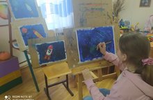 В День Космонавтики 12 апреля в объединении «Палитра» прошло занятие на тему «Мы и космос». Учащимся были продемонстрированы кадры из фильмов об освоении космоса, потом педагог Гришина Н.В. провела беседу, дети делились известными им фактами - о Ю.А. Гагарине, первых собаках в космосе – Белке и Стрелке.