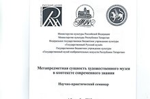 6 декабря 2019 года педагоги МБОУ «Иске Рязяпская СОШ» Мухаметзянова Ф.Д., Минхатыпова С.И. и МБОУ ДО «Дом детского творчества» Ермишина Е.П. посетили образовательный семинар для сотрудников образовательных служб музеев и школьных педагогов «Метапредметная сущность художественного музея в контексте современного знания». Семинар проходил в рамках Метапредметного образовательно-выставочного проекта «Путешествие в мир науки и искусства». Образовательный семинар проведен сотрудниками отдела «Российский центр музейной педагогики и детского творчества» Русского музея: -заведующий отделом «Российский центр музейной педагогики и детского творчества» Русского музея, доктор педагогических наук, профессор Б.А. Столяров, -заведующий сектором по работе с образовательными учреждениями О.Р. Лузе, -специалист по образовательной деятельности I категории, художник-реставратор А.Ю. Пейчева.