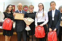 В завершение встречи Минтимер Шаймиев вручил лучшим волонтерам Татарстана Благодарственные письма Республиканского Фонда «Возрождение». Таким письмом награждены активисты Детской Районной Думы и их руководитель Федорова К.С. Ребятам вручены памятные подарки.