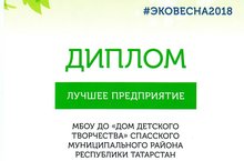 Обладателями дипломов стали победители республиканского конкурса «ЭКОвесна—2018» на муниципальном этапе. Дом детского творчества отмечен в номинации «Лучшее предприятие» (директор Зульфия Климовна Тихонова). Конкурс проводился в рамках санитарно-экологического двухмесячника Министерством экологии и природных ресурсов РТ. Его участники были задействованы в мероприятиях по благоустройству и очистке территорий, по посадке деревьев, в экологических занятиях.