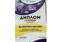 Малова Валентина Олеговна, педагог Дома детского творчества стала дипломантом I степени в Республиканском медиаконкурсе «Мы-это мир!», и была награждена дипломом и цифровой рамкой.
