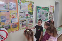 Воспитатель провела с детишками беседу «Безопасность на дорогах ради безопасности жизни», используя стенды. 03.03.2026