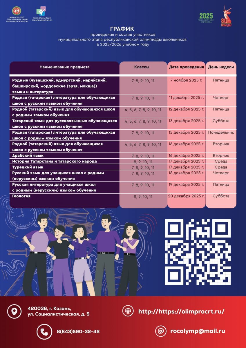 График проведения муниципального этапа всероссийской и республиканской олимпиады школьников 30.04.2026