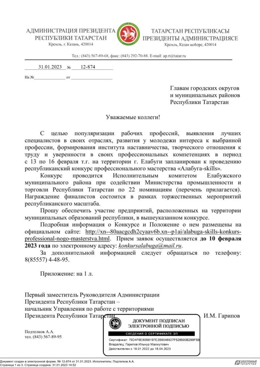 Республиканский конкурс профессионального мастертсва с 13 по 16 феврвля на территории г. Елабуга, подробная информация здесь: Алабуга