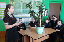 2.Учащиеся 10 класса Галяутдинова Илюза и Шафигуллина Альбина организовали выставку домашних растений.