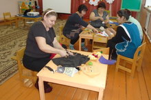 Бүген "Миләшкәй" балалар бакчасында әниләр "Сертотмас үрдәк" әкият курчак театрына, курчаклар ясарга килделәр.