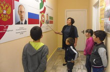 В рамках мероприятий,приуроченных Дню России, обучающиеся школы-детский сад под руководством учителя начальных ,Альденейкиной С.П., классов изготовили декоративное панно "Цвета России" .
