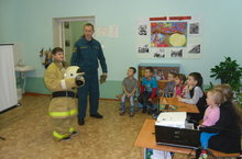 Командир отделения ОП с.Большое Шемякино Апастовского отряда РТ Васин В.В. провел с детьми занятие по теме: "Служба спасения-01".