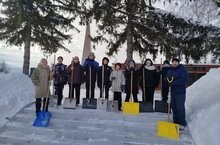 Юнармейцы нашей школы совместно с руководителем Абдрахмановым А. Д. и классным руководителем 8 класса Тимрюковой Г.А. почистили от снега территорию мемориального комплекса с. Бакрчи.