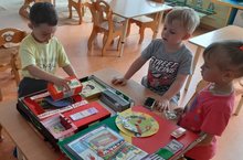 День дорожных знаков. 26.06.2020 В детском саду прошли мероприятия, приуроченные к Дню Дорожных знаков. Дети 1 мл. гр. отправились в лес на автобусе. По дороге малыши познакомились с различным транспортом. Вернувшись в группу, ребята с удовольствием собирали пазлы и закрепляли составные части машин :колесо, кабина, кузов. Ребята II младшей и средней групп через сюжетно/ролевую игру “Перекрёсток” закрепляли знания о сигналах светофора и пешеходном переходе. На развлечение «Знает вся моя семья» дети старшей группы отгадывали загадки, отрабатывали навыки вождения самокатов, лавируя между конусами, превращаясь в автомобили, перевозили грузы на скорость. Оно завершилось весёлым танцем. Мы призываем всех: «Соблюдайте правила дорожного движения безопасность детей в ваших руках!»