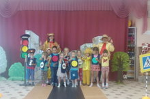 Сегодня в старшей группе прошло мероприятие - развлечение по правилам дорожного движения «Красный, желтый, зеленый!!».на этот раз проверить знания наших воспитанников пришли:Всезнайка Академовна, Незнайка, Буратино и Чиполлино. Целью мероприятия было: выявить уровень готовности дошкольников решать дорожно-транспортные ситуации; закреплять правила дорожного движения, учить применять знания, полученные ранее в практической деятельности; воспитывать сообразительность и находчивость, потребность детей быть дисциплинированными и внимательными на улицах, осторожными и осмотрительными.