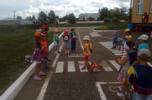 Проблема безопасности дорожного движения на данный момент является одной из важных проблем. В рамках летнего проекта по ПДД к детям младшей группы приходил инспектор Свистулькин. Но пришел он не один. Он привел с собой Мишку, который совсем не знал правил дорожного движения. С помощью Свистулькина дети закрепили основы безопасного поведения на дороге, в городе, навыки сознательного отношения к соблюдению правил безопасности движения, расширили знания о правилах поведения пешехода и водителя в условиях улицы. Каждый из нас желает видеть своего ребенка здоровым и невредимым. Главным в воспитании законопослушного гражданина (в том числе и как участника дорожного движения) для взрослых должен быть принцип «Делай, как я». Чтобы ребенок не нарушал Правила дорожного движения, он должен не просто их знать — у него должен сформироваться навык безопасного поведения на дороге. А чтобы наш Мишка соблюдал все правила перехода дороги, ребята нарисовали ему пешеходный переход.