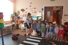 В минувшую неделю в детском саду для подготовительной группы было проведено открытое образовательное занятие "Необычный день Зебрят" по правилам дорожного движения. Дети активно отвечали на вопросы, разгадывали загадки по ПДД, помогли детям из будущего, выполнили задание Гос авто инспектора Свистулькина- сделали и раскрасили необычной -флуоресцентной краской фликеры . Занятие получилось не только полезным, но и веселым и интересным!