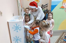 Малыши II младшей группы побывали в волшебном лесу в гостях у Дедушки Мороза. Белочки, зайчики, мишки, лисички и волчата помогли заблудившейся в лесу Снегурочке найти домик Деда Мороза. Ребята с большим удовольствием пели песни, рассказывали стихи, играли с Дедушкой. Слепили большого снеговика, танцевали со снежками. Дедушка Мороз пригласил малышей поехать за подарками на своем веселом паровозе.