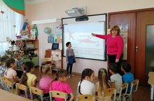 В средней- старшей группе прошло развлечение по ПДД «Компьютерное царство – дорожное государство». К детям на самокате приехала Баба яга, которая никак не хотела выполнять правила дорожного движения, и оказалась в заточении Главного вируса «Компьютерного царства – дорожного государства». Ребята решили помочь Бабе яге. Они отлично справились в вопросами в игре «Правда или нет». Компьютерная мышка загадывала загадки-обманки и в этом задании постарались. Но в Мультяшной стране беда приключилась – на улицах исчезли все дорожные знаки. Дети разделились на три группы, собрали дорожные знаки, рассказали что они обозначают.