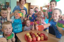 16 августа в средней -старшей группе прошла беседа «Яблочный спас яблочко припас». Дети узнали, что яблочный спас – это праздник встречи осени. В этот день собирают спелые наливные яблочки и освящают их. На завтрак пекут пироги с яблоками, пьют яблочный компот. В народном календаре православных славян -один из первых праздников урожая: день, с которого, согласно поверия природа разворачивалась к осени и зиме. Ребята посмотрели небольшой фильм Яблочный спас, с помощью пластилина сделали свои наливные яблочки. -