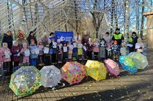 Юные участники получили задание – украсить свои зонты световозвращающими элементами, превратив обычный аксессуар в важный атрибут безопасности.