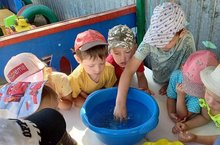 Солнце, воздух и вода – самые значительные и дорогие богатства человека. Это источники здоровья, бодрости, работоспособности и долголетия. Сегодня с воспитанниками детского сада «Малыш» была проведена беседа о пользе для организма солнца и воды. Для детей были организованы игры на свежем воздухе, экспериментирование с водой. С большим удовольствием воспитанники принимали воздушные ванны и водные процедуры.