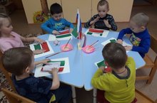 В преддверии Дня народного единства в детском саду прошли тематические мероприятия, объединённые одной темой – "День народного единства". В ходе мероприятий дети в доступной форме познакомились с историей возникновения праздника, подвигами наших предков во имя независимости Родины. Ребята вспомнили о том, как велика и красива наша Родина, как богата событиями её история, закрепили свои знания о государственных символах, народах, проживающих в Республике Татарстан. -